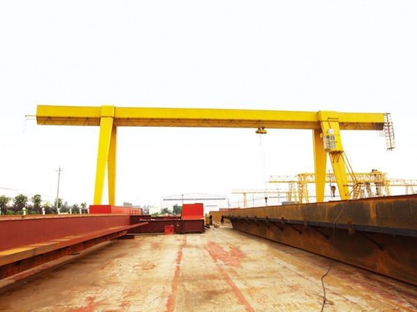 結構形式與MG型起重機基本相同,一側有支腿,在地面軌道上運行;另一側無支腿,在廠房上部的軌道上運行。