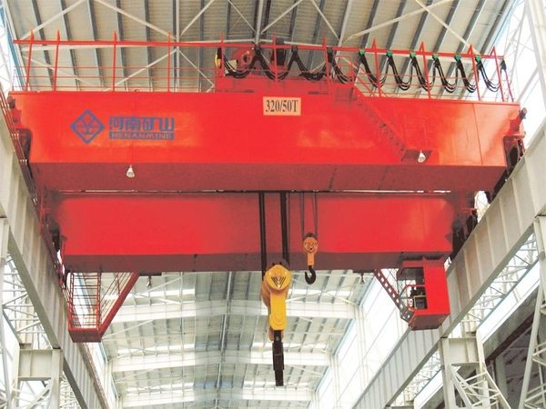 主梁上面鋪設有軌道,供起重小車沿主梁方向作橫向移動。主梁與箱型端梁焊接而成,端梁中間布置有接頭,螺栓或銷軸連接,供橋架分拆運輸。